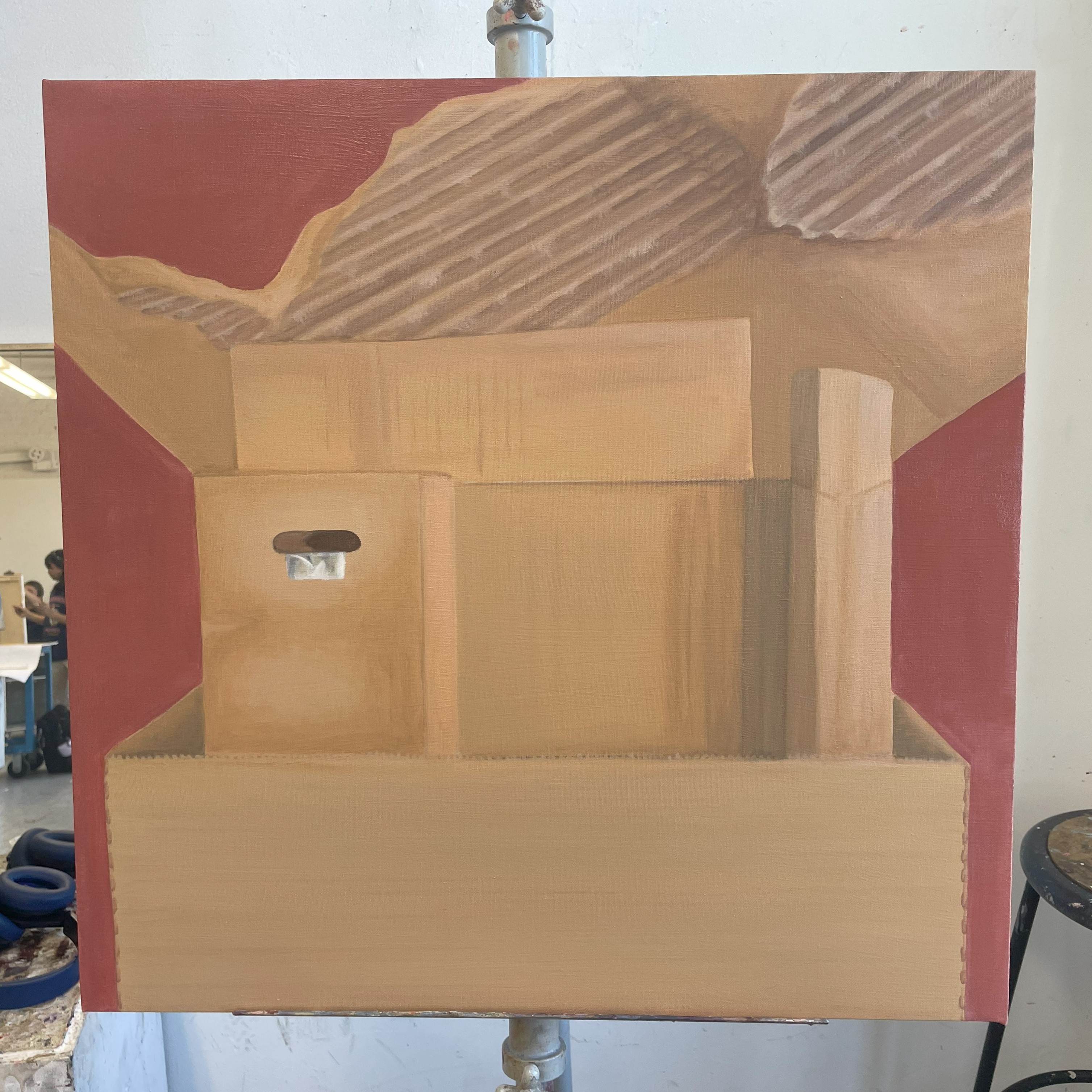 Oil on canvas. Abstracted from a cardboard still life. March 2025.